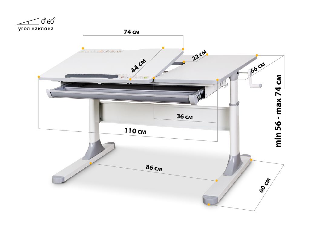 Угол наклона 0-60 град.